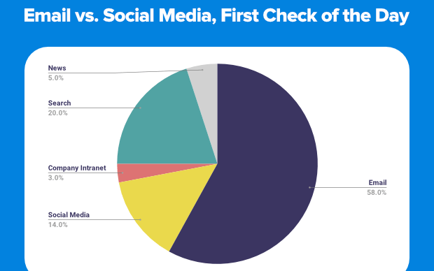 As the graph shows that people spend more on email search rather than on social media. Checking email is also a complementary activity. People do it while watching TV (69%), in bed (57%), and on vacation (79%).